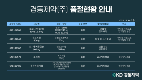 품절미송 12월 16일ㅣ품절 및 입고 일정 안내 작성자관리자 등록일 25-12-18 조회22회 업로드 일시 2025-12-16 품절 & 입고 경동제약, 구주제약, 국제약품, 대우제약, 대한뉴팜, 씨엠지제약, 아주약품, 안국뉴팜, 위더스제약, 유유제약, 이든파마, 제뉴원사이언 본문 12월 19일ㅣ품절 및 입고 일정 안내 12월 17일ㅣ품절 및 입고 일정 안내 목록