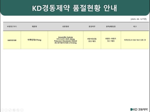 품절미송 ※ 품절 및 입고 일정 안내 작성자관리자 등록일 25-09-12 조회21회 업로드 날짜 2025-09-12 품절 & 입고 경동제약, 국제약품, 대한뉴팜, 일화제약, 서울제약, 위더스제약, 경보제약 본문 ※ 품절 및 입고 일정 안내 ※ 품절 및 입고 일정 안내 목록
