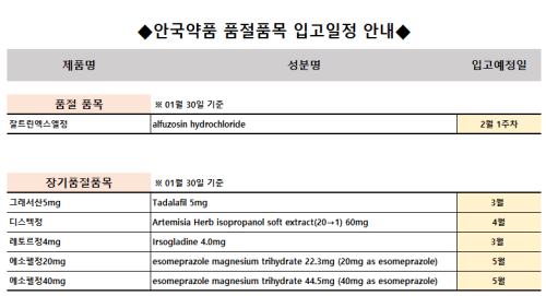 품절미송 01월 30일ㅣ품절 및 입고 일정 안내 작성자관리자 등록일 26-01-30 조회3회 업로드일시 2026-01-30 품절 & 입고 국제약품,대한뉴팜,동구바이오,마더스,안국약품,알리코제약,킵스바이오,테라젠이텍스,한국프라임,한국휴텍스, 본문 01월 28일ㅣ품절 및 입고 일정 안내 목록
