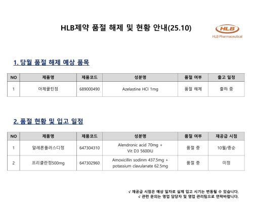 품절미송 ※ 품절 및 입고 일정 안내 작성자관리자 등록일 25-09-30 조회9회 업로드 날짜 2025-09-30 품절 & 입고 HLB제약, 진양제약, 한국파비스제약, 알리코제약 본문 ※ 품절 및 입고 일정 안내 ※ 품절 및 입고 일정 안내 목록
