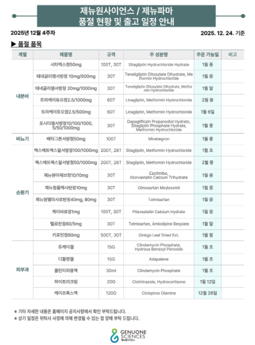품절미송 12월 26일ㅣ품절 및 입고 일정 안내 작성자관리자 등록일 25-12-26 조회17회 업로드 일시 2025-12-26 품절 & 입고 제뉴원사이언스 본문 12월 29일ㅣ품절 및 입고 일정 안내 12월 24일ㅣ품절 및 입고 일정 안내 목록