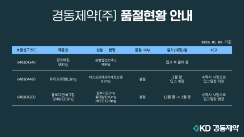 품절미송 01월 05일ㅣ품절 및 입고 일정 안내 작성자관리자 등록일 26-01-05 조회20회 업로드 일시 2026-01-05 품절 & 입고 경동제약,구주제약,대우제약,씨엠지제약,안국뉴팜,안국약품,알리코제약,유유제약 본문 01월 07일ㅣ품절 및 입고 일정 안내 01월 02일ㅣ품절 및 입고 일정 안내 목록