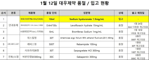 품절미송 01월 13일ㅣ품절 및 입고 일정 안내 작성자관리자 등록일 26-01-13 조회14회 업로드일시 2026-01-13 품절 & 입고 대우제약,삼성제약 본문 01월 14일ㅣ품절 및 입고 일정 안내 01월 12일ㅣ품절 및 입고 일정 안내 목록
