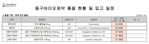품절미송 01월 16일ㅣ품절 및 입고 일정 안내 작성자관리자 등록일 26-01-16 조회12회 업로드일시 2026-01-16 품절 & 입고 건일바이오팜,경보제약,국제약품,대웅바이오,대한뉴팜,마더스제약,에이프로젠,유니메드,이든파마,킵스바이오,한국프라임,동구바이오 본문 01월 19일ㅣ품절 및 입고 일정 안내 ♣경동제약 최우수 파트너사 선정 안내 목록