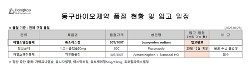품절미송 ※ 품절 및 입고 일정 안내 작성자관리자 등록일 25-09-25 조회7회 업로드 날짜 2025-09-25 품절 & 입고 동구바이오, 팜젠사이언스 본문 ※ 품절 및 입고 일정 안내 ※ 품절 및 입고 일정 안내 목록